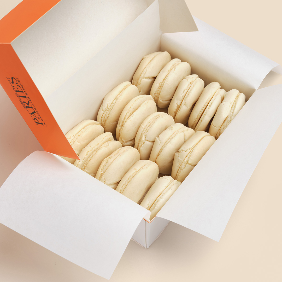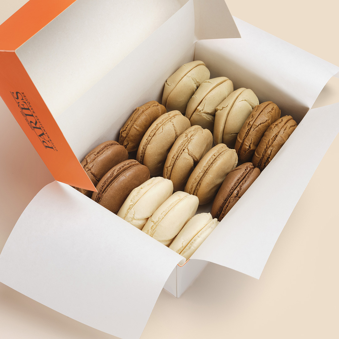 Una hábil mezcla de polvo fino de almendras Marconas, azúcar y clara de huevo. Básico (almendra) o también de: café, chocolate, pistacho o avellanas.