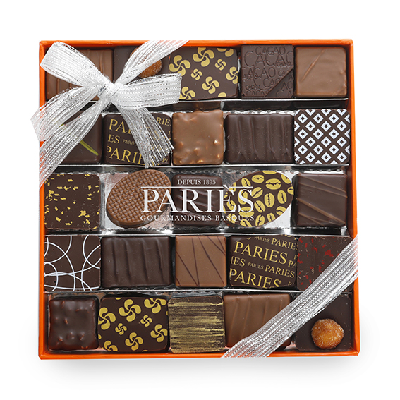Elija una variedad de dulces de chocolate rellenos de acuerdo con sus preferencias: toda la leche, o todo oscuro, o déjese tentar por una mezcla de leche negra seleccionada por nosotros.