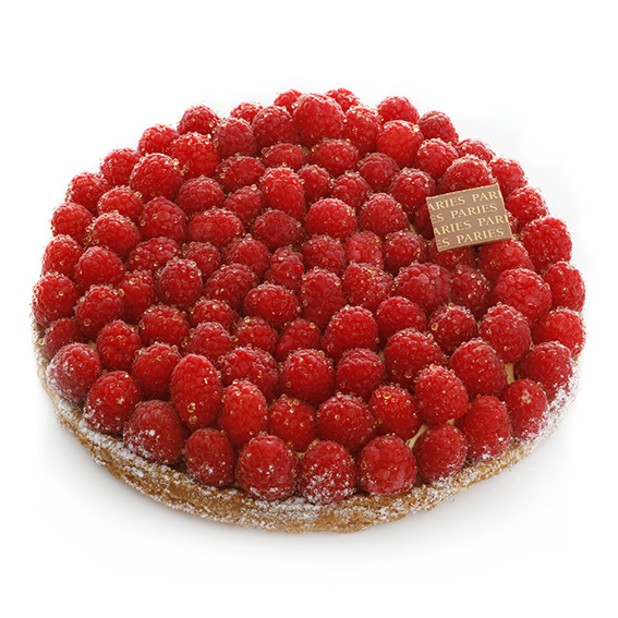 Bizcocho bretón, crema de vainilla y frambuesas frescas.