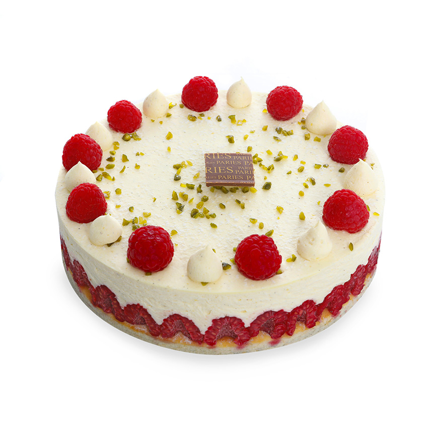 Frambuesa: crema de muselina de vainilla, bizcocho y frambuesas.