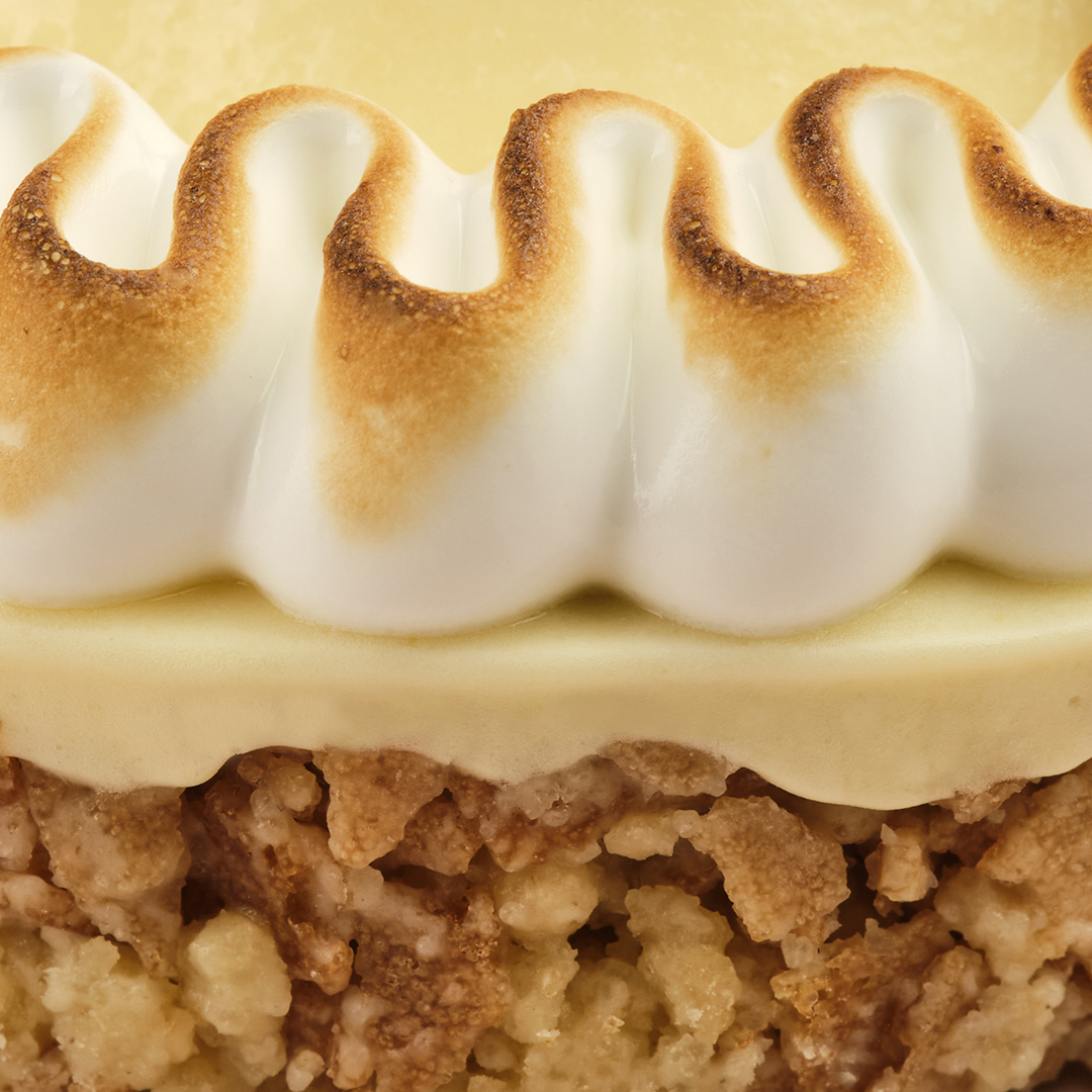 Masa quebrada de almendra, crema de limón, merengue.