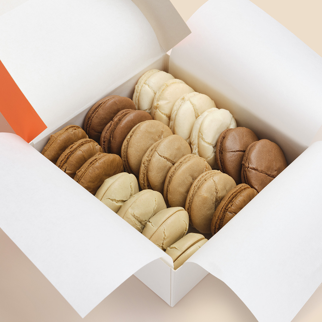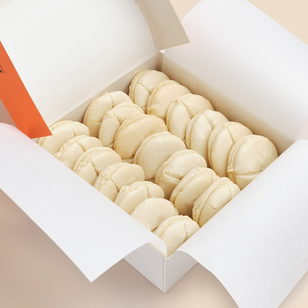 Una hábil mezcla de polvo fino de almendras Marconas, azúcar y clara de huevo. Básico (almendra) o también de: café, chocolate, pistacho o avellanas.