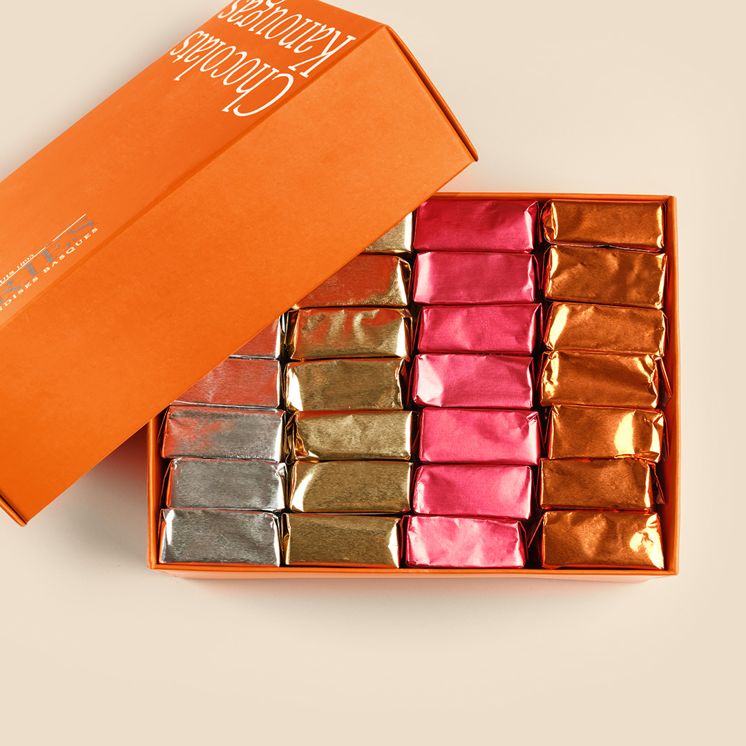 La especialidad más antigua de Maison Pariès es una creación del chocolatero Jacques Damestoy. Suntuosamente enriquecido con nueces o avellanas, aromatizado con café y vainilla, el kanouga es en sí mismo un mundo de sutileza. Fue bautizado por la prensa de Nueva York “Mejor caramelo del mundo”.