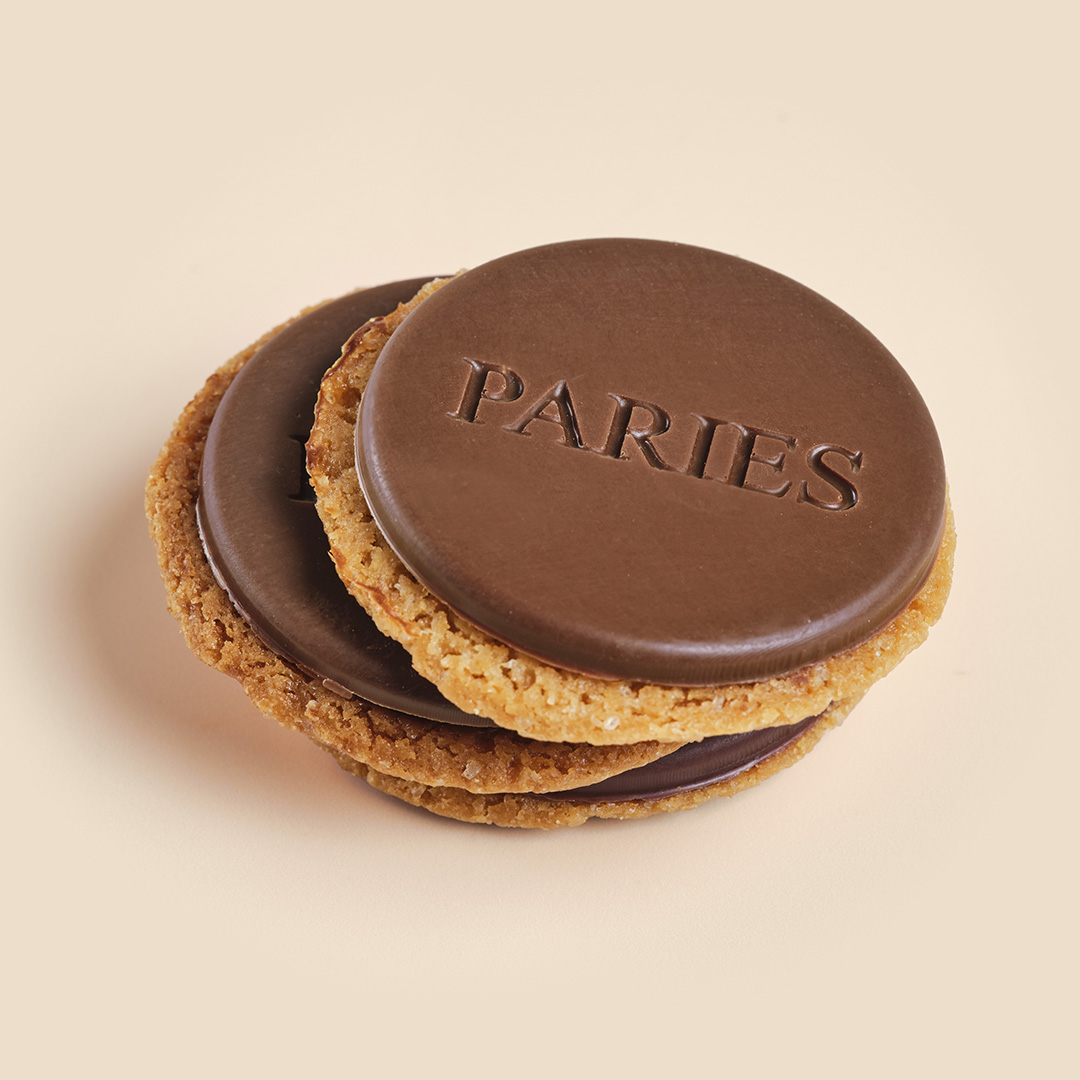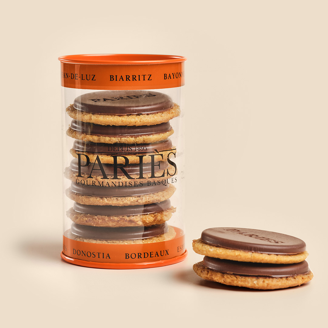 (Re)descubre el Petit Pariès: una manteca vasca muy crujiente, cubierta con un generoso disco de chocolate con leche.