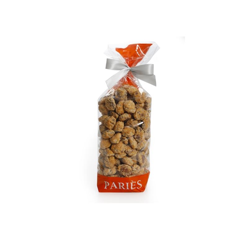 Nueva y única creación de 2017 de Maison Pariès… losEspelines®. Almendras tostadas, caramelizadas y condimentadas con un toque de pimentón de Espelette .