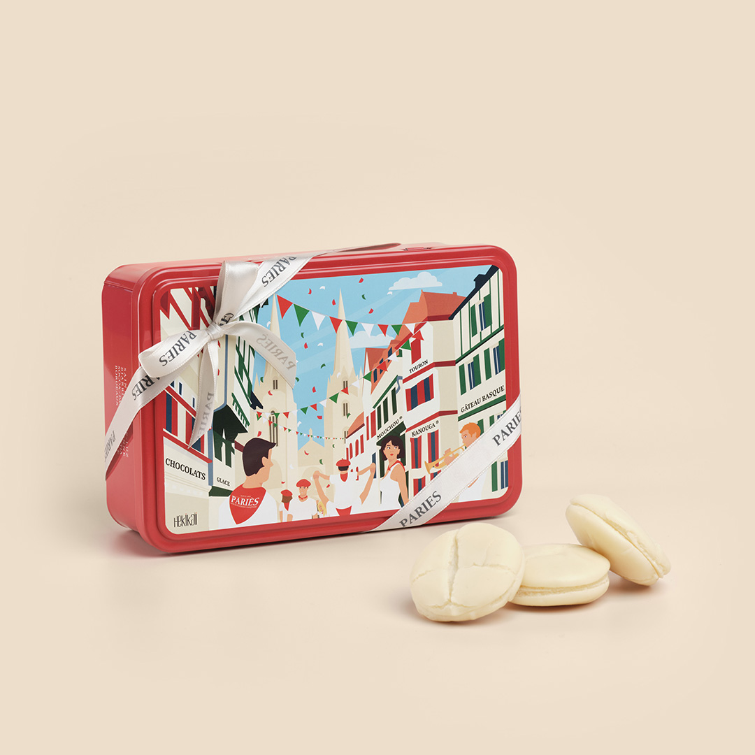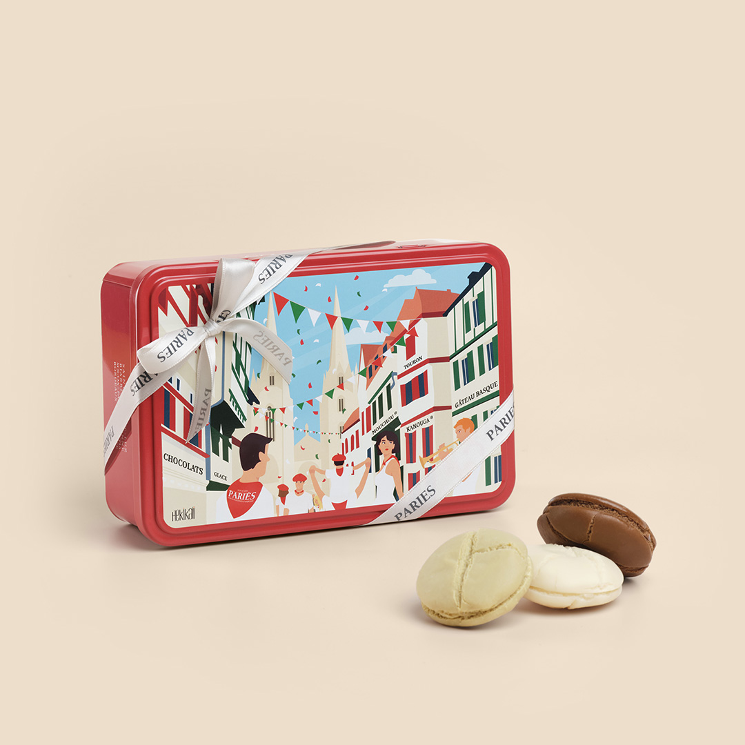 Ingredientes de surtido de Mouchou®: almendras, azúcar, clara de huevo , estabilizador: sorbitol, pistachos, 100% de masa de cacao, avellanas, extracto de café, sabor natural a vainilla, colorantes: caramelo negro, curcumina, indigotina.