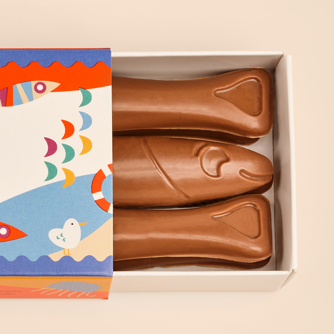 Date un capricho con nuestras sardinas de chocolate con leche 35% .