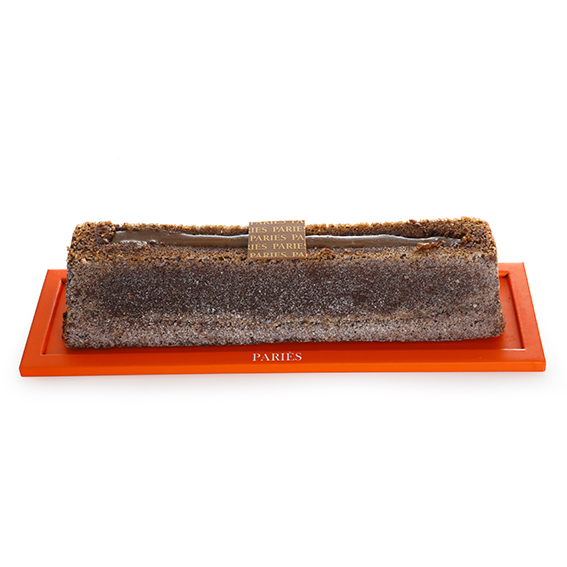 Galleta de chocolate, ganache de chocolate, caramelo de mantequilla salada.