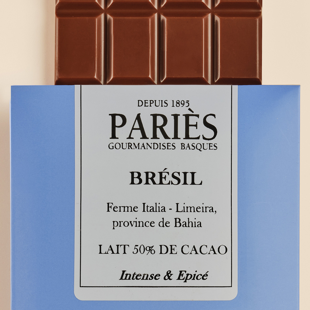 Esta tableta de chocolate con leche 50%, pura manteca de cacao, es intensa y especiada. Se distingue inmediatamente por su fuerza de cacao y sus notas lácteas ligeramente dulces que luego dan paso a un delicado amargor y notas especiadas de malta y caramelo cocido al final de la degustación.